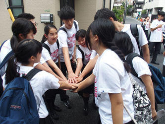 外国人観光客に、私達が観光ボランティアであることがわかるようにと、おそろいのTシャツを作りました。デザインはグローバル高校生によるものです。