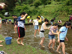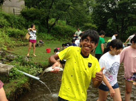 マスのつかみ取り。あいにくの天候で池の水は非常に冷たかったですが、一人で5匹もつかみどる勇者もいました。