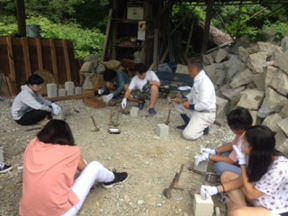 財務省のアーチにも使われている南牧村特産の椚石で花瓶作りをしました。