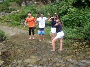 初日に出来なかった火おこし体験や川遊びも楽しみました。
