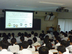 中学1年生の2学期は、心も身体もぐっと成長する時期です。クラスや友達関係、勉強面で不安やトラブルを抱えることも多くなるのではと思います。そこで、まずはカウンセラーから、心の成長や自分の気持ちをふりかえることの大切さをレクチャーしました。その後、各クラスに戻り、クラス・友達関係・勉強・その他のことについて、今の気持ちを目盛りに表し、その目盛りにした理由を言葉にする活動を行いました。こうした活動を行うことで、自分の気持ちを振り返り、言葉にする練習ができたのではないでしょうか。今後も困難にぶつかった時や悩んだ時、元気になりたい時などに自分の気持ちをふりかえってみてほしいと思います。学園全体でも、これからも生徒のみなさんをサポートしていきます。