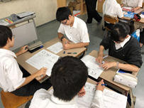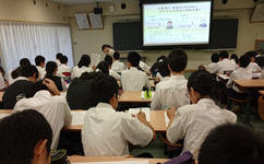 授業の主なねらいは、意見が対立した時の解決方法を考える、グループワークでリーダシップとフォロワーシップを発揮するというものでした。日常的に起こりうる場面を使いながら、「意見の対立解決シート」を用いて、一人一人に解決策を考えてもらいました。前半と後半に分け、前半はスクールカウンセラーによる全体授業、後半は各クラスに分かれて担任の先生が授業を行いました。
