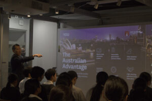 先月、グローバル高校1年生・3年生の生徒を対象に、海外大学関係者から直接話を聞くことができる「オーストラリア名門大学説明会」を開催しました。
