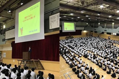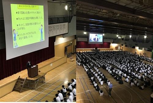 6月23日(土)の全校集会では駒込警察署の方々をお招きしてSNSのリスクや薬物乱用についての研修会を行いました。