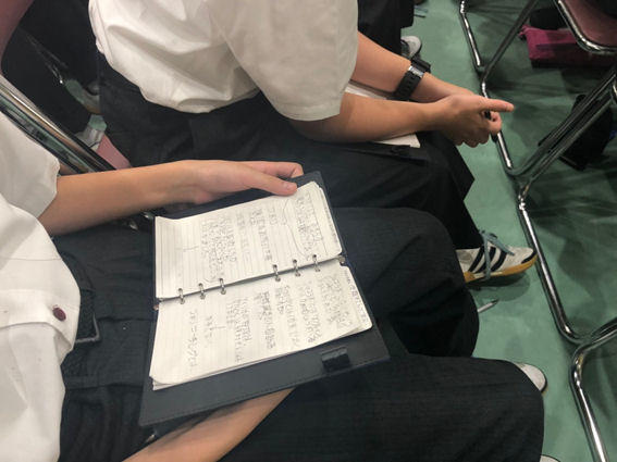 生徒がお聞きしたことを熱心に手帳に書き込む姿がその時間の濃密さを表しています。