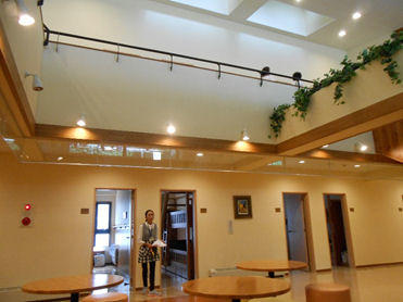 こちらは本館管理棟2階の「閲覧室」です。ここは食堂吹き抜けに隣接しており、写真の時点では試験中の為まだまだ物音を立てないよう注意しながら説明を聞いているところです。
