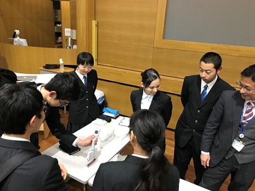 最後に、研究室で実際に使っている実験器具を使って見せてくださいました。普段決してお目にかかれない高性能な器具に生徒たちはくぎ付けでした。