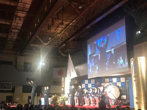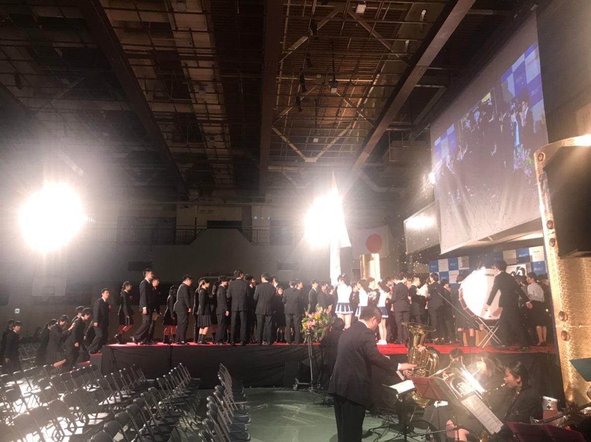 式は3年間を振り返る思い出のVTRから始まり、懐かしい映像が流れると、時折卒業生から歓声が上がりました。