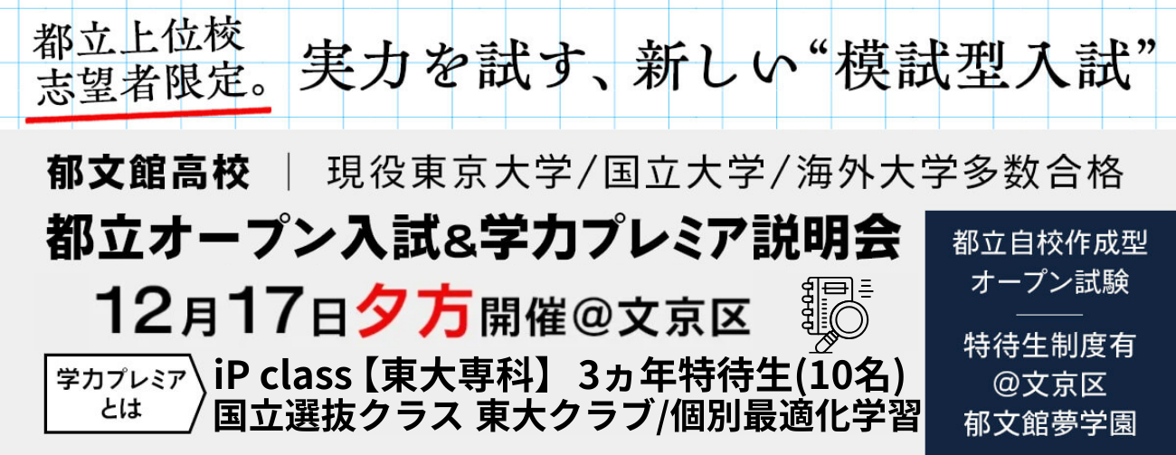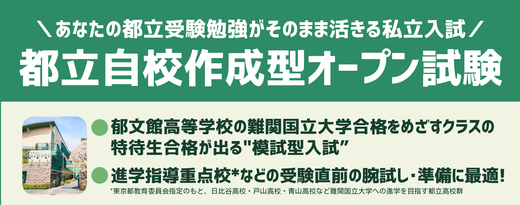 郁文館高等学校は、都立進学指導重点校を志望する中学生を対象に、都立自校作成問題に類似した形式で行う「都立自校作成型オープン入試」を2026年2月14日(土)に実施します。