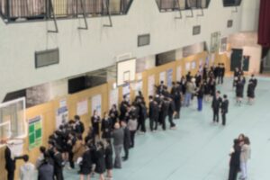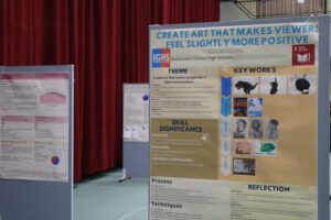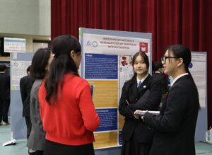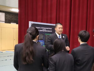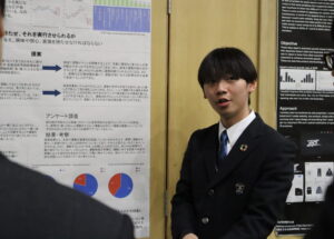 後半には、1年生全員によるポスタープレゼンテーションを実施しました。Honorsクラスの生徒およびLiberal Artsクラスで海外大学進学を志望する生徒は、オールイングリッシュでの発表に挑戦し、来場者や外部識者との質疑応答にも積極的に取り組みました。