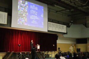 また、アメリカに留学した生徒からは、留学中に取り組んだ探究活動についての発表もありました。日本の空き家問題をテーマに、「スクラップ・アンド・ビルド」から「リユース」への転換という視点で研究を進め、留学先で実際の現場に関わりながら学んだ経験が紹介されました。留学で得た学びを社会課題と結びつけ、行動へとつなげていく姿は、留学を控えた後輩たちにとって大きな刺激となったことでしょう。