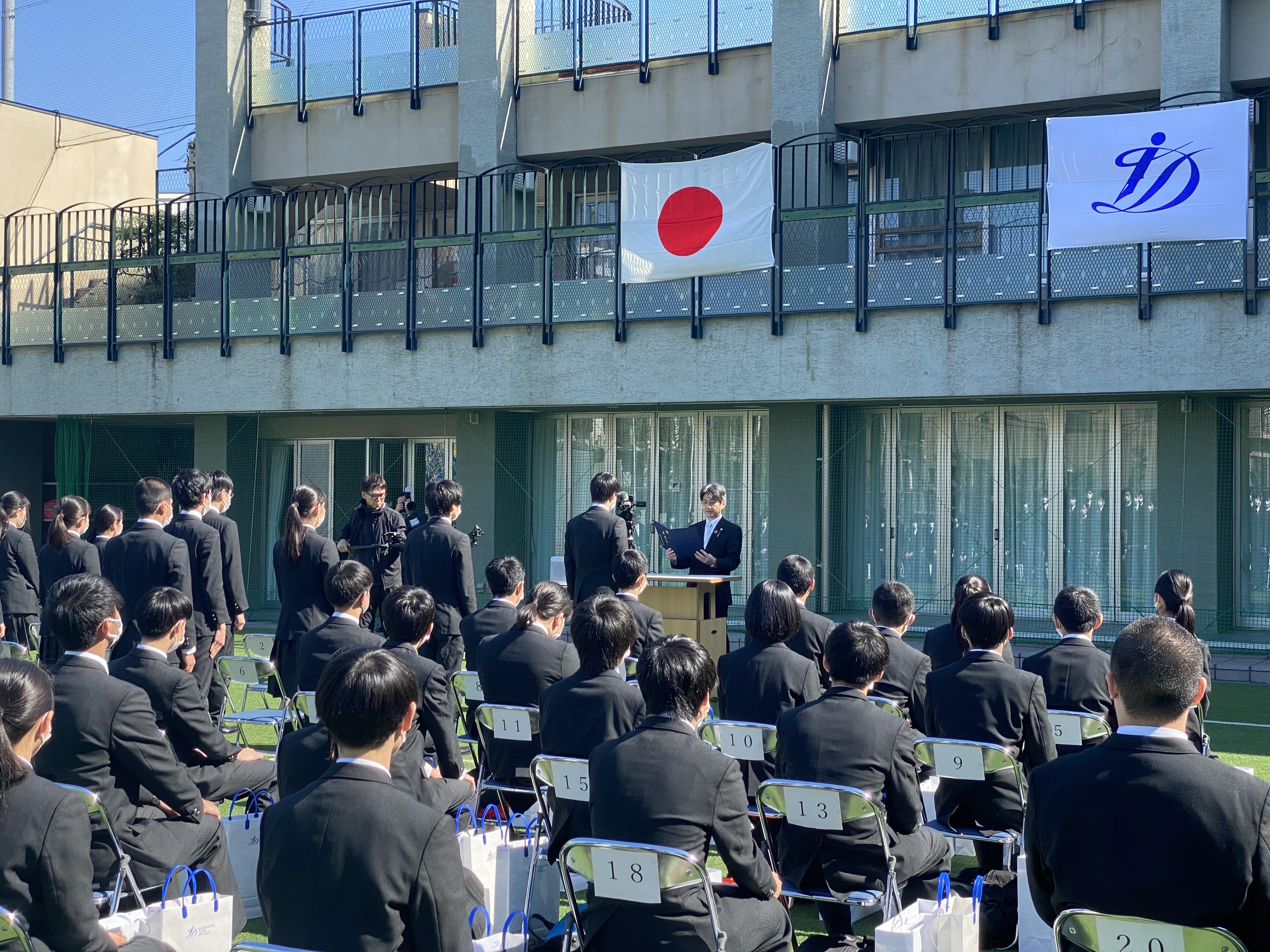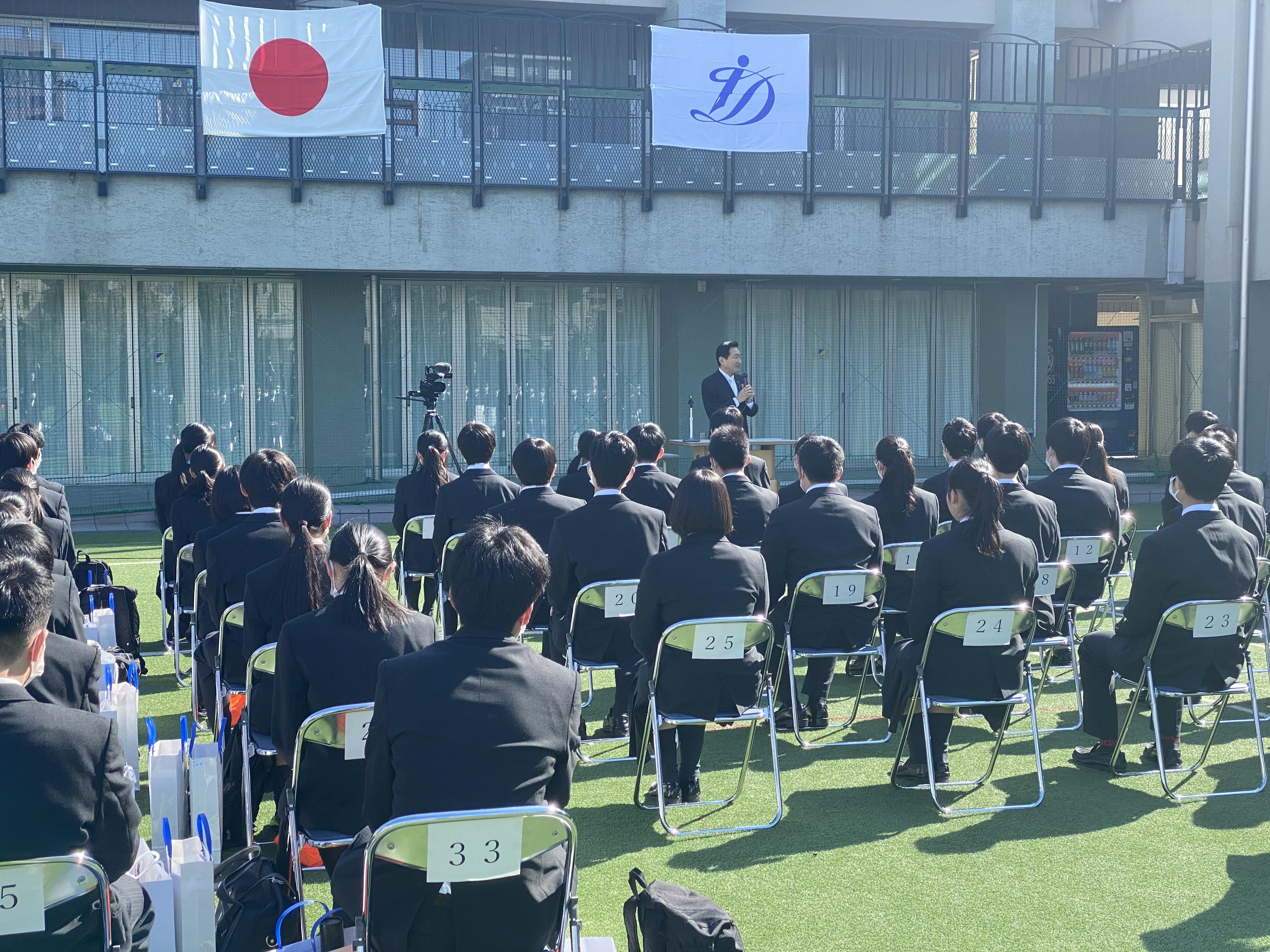 郁文館高校・グローバル高校と同じようにコロナウィルス感染拡大を考慮し、グランドで卒業証書授与を実施する形となりました。
