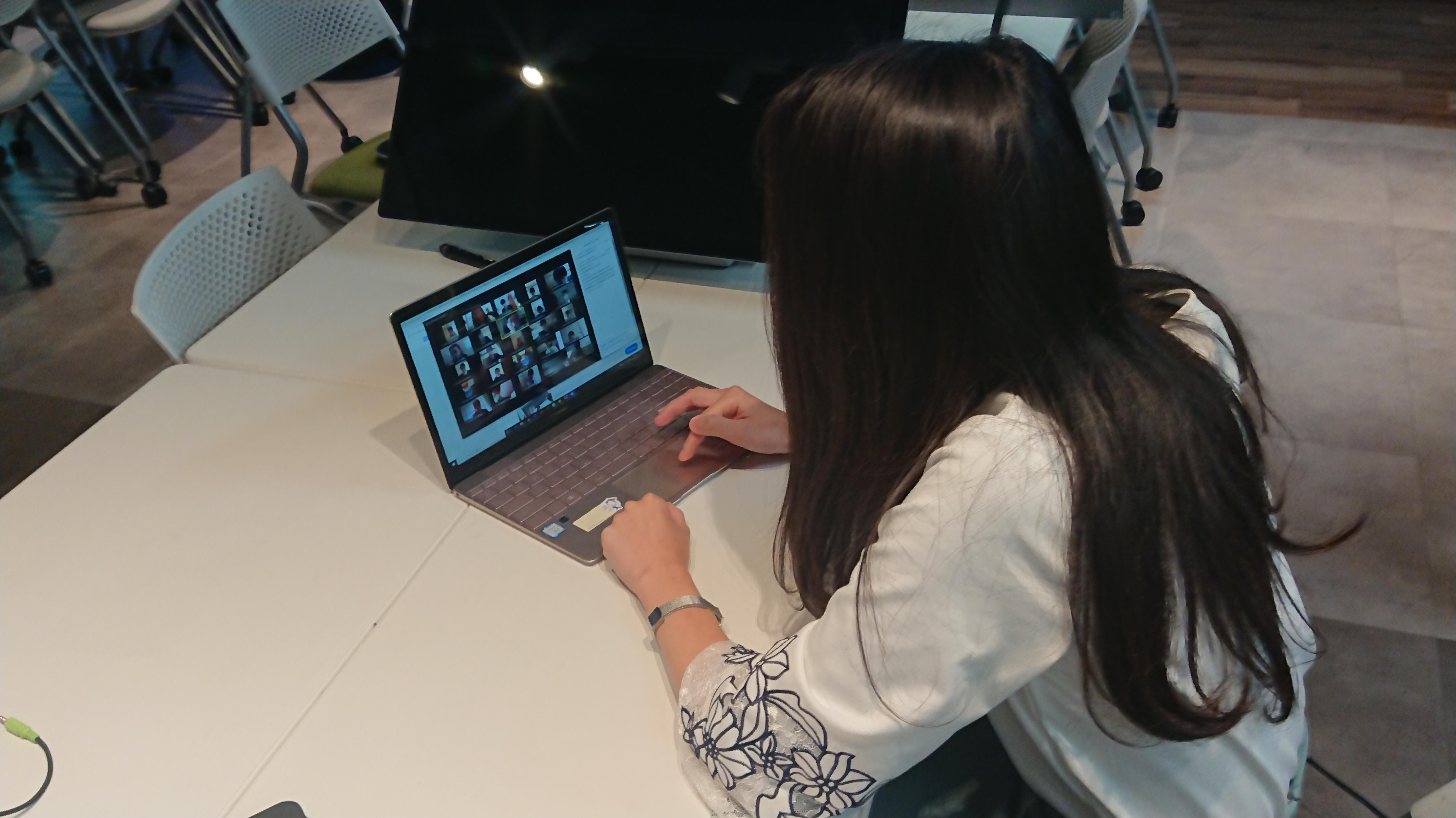 スタートしたオンラインホームルームで生徒は、自宅に居ながらも制服を着てホームルームに臨みました。