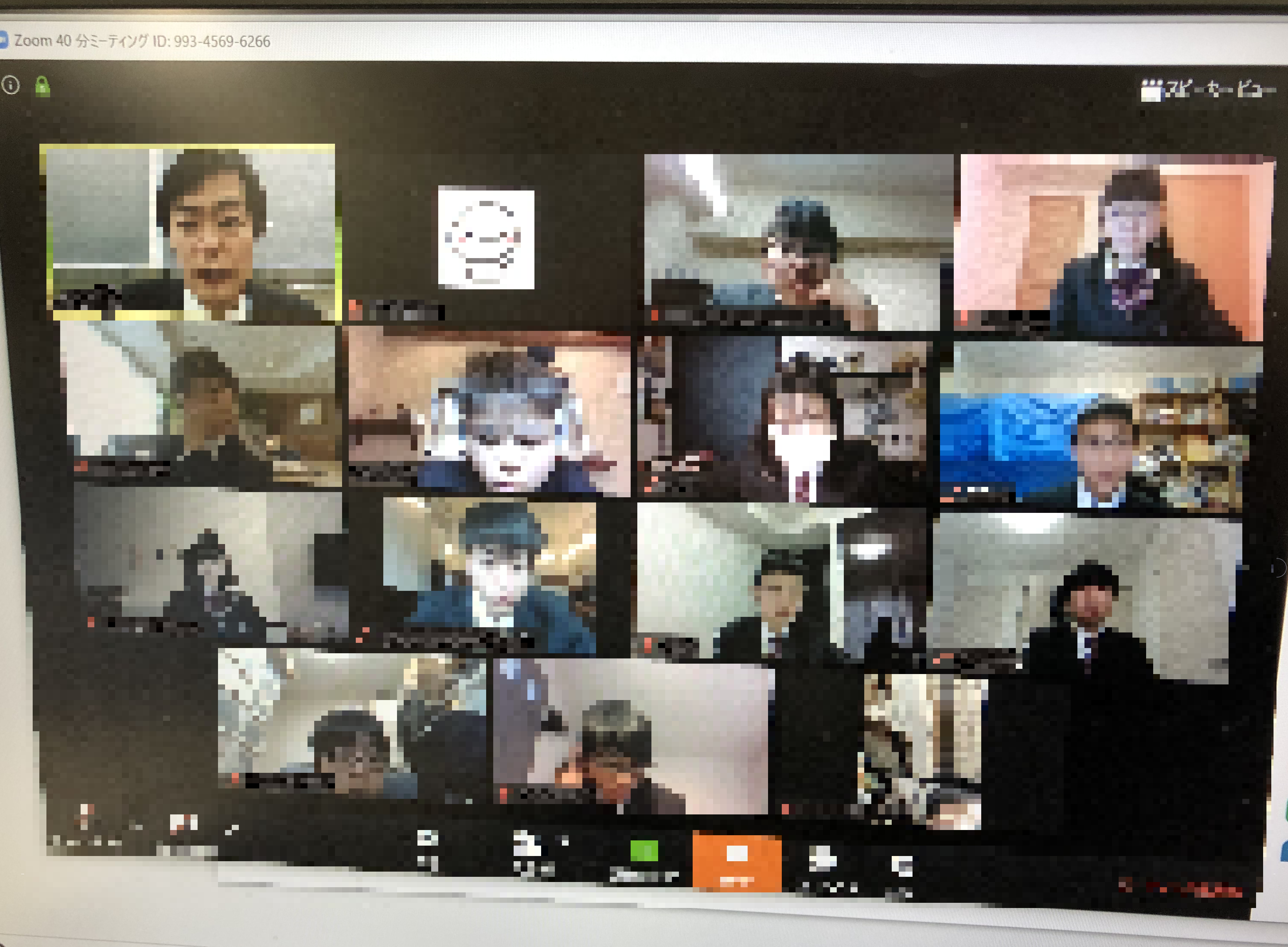 画面上に生徒たちの顔が並び、授業開始時間の13時から一人一人の名前を呼んで出席をとることから始まりました。