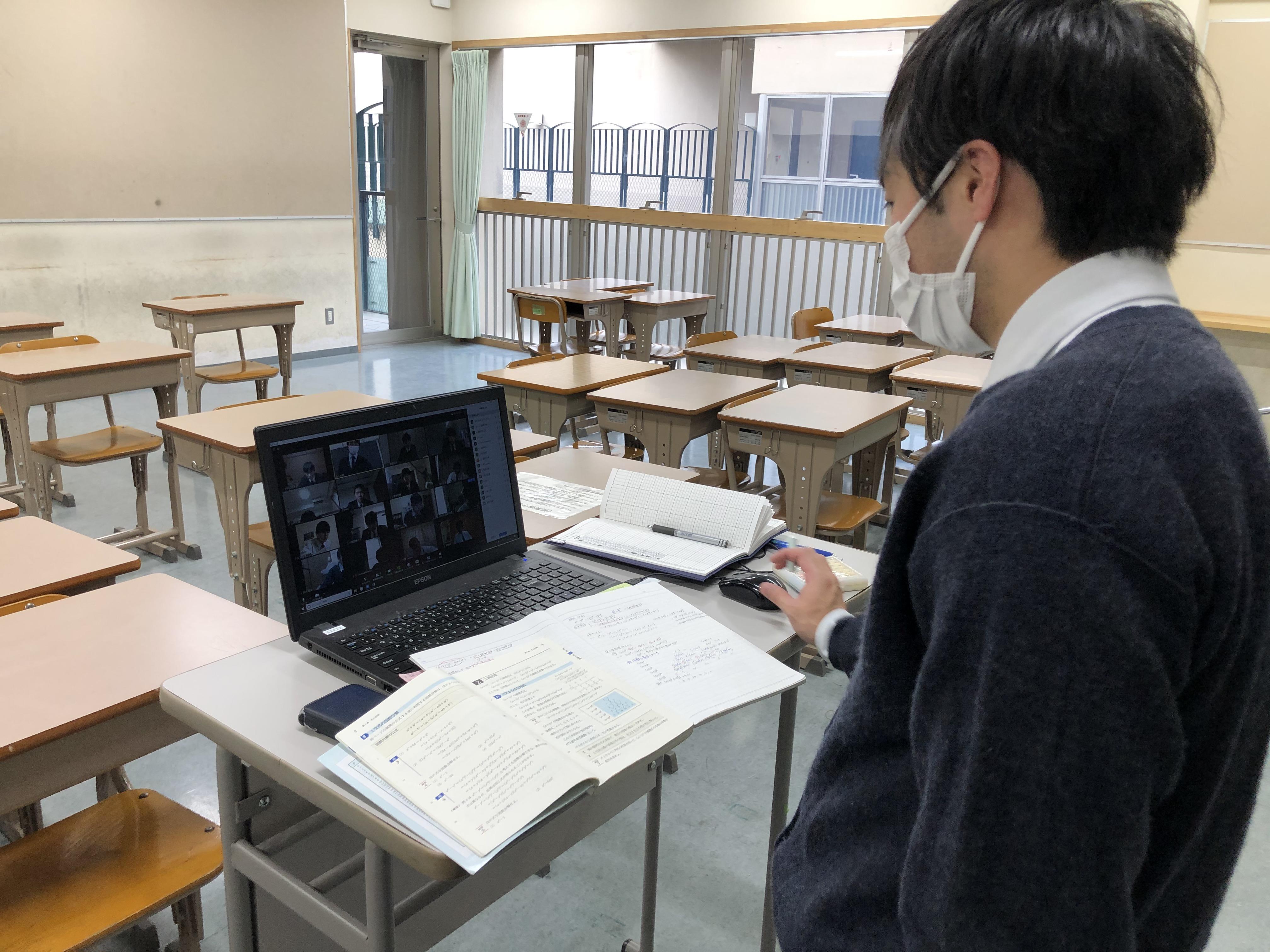 また、授業が始まってからは、通信不良や不具合に即座に対応できるよう、授業担当以外の教員がWEB上を巡回しながら、念入りに接続チェックなどを行いました。生徒たちへ、今できる中で最高の学習環境を整えるために、全教職員で取り組んでいます。