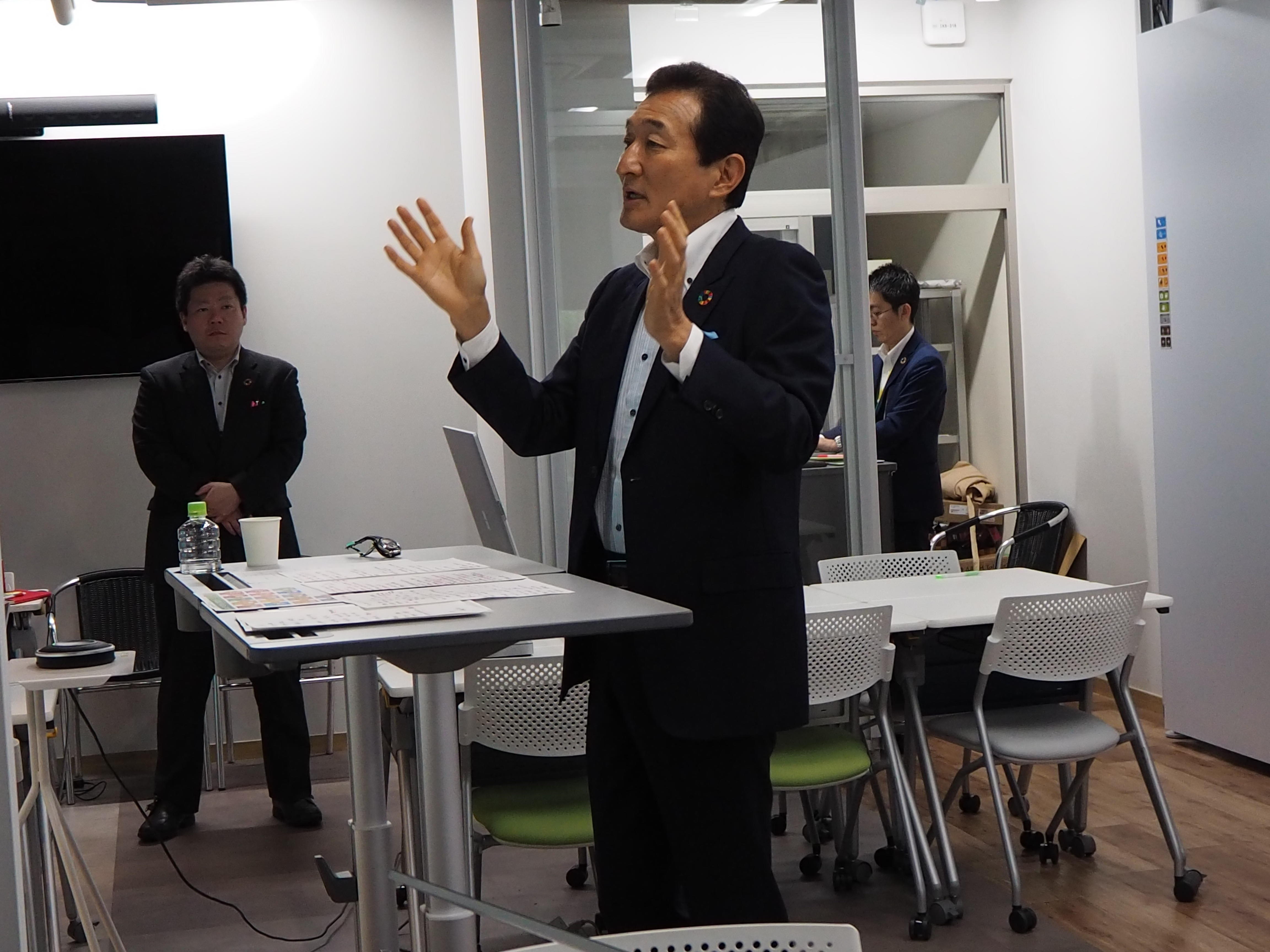 最初に、「コロナウイルスを通して世界を学ぶ」をテーマとして、現在コロナウイルスによって世界で起きている様々な問題が、食料や環境、エネルギー、経済などに影響している。この影響が世界の多様なつながりによって社会を大きく変化させ、個人のライフスタイル、企業のビジネスモデルなどにも大きな影響を与えていることが説明されました。