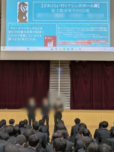 毎年開催するPBLツアーキックオフでは、2・3年生が1年生に向けて自身の探究テーマについて、各PBLツアー先ごとにプレゼンテーションを実施!