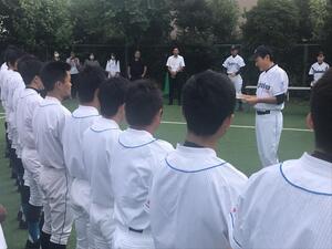 新型コロナウイルス感染拡大の影響で中止となった第102回全国高校野球選手権大会東・西東京大会に代わる、「2020年夏季東西都高校野球大会 東・西東京大会」(都高野連主催)が、7月18日に開幕を迎えるにあたり、渡邉理事長・校長が硬式野球部を激励に訪れました。