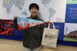 現在はTemple大学で勉学に励む卒業生。「卒業後も、大好きなグローバル高校に関われて貴重な経験ができました。この経験も全て力に変えて、“高校生の頃から挑戦したいと思っていたアートの世界で人の役に立つ仕事をする夢”に向かって進んでいきたいです。」と話してくれました。
