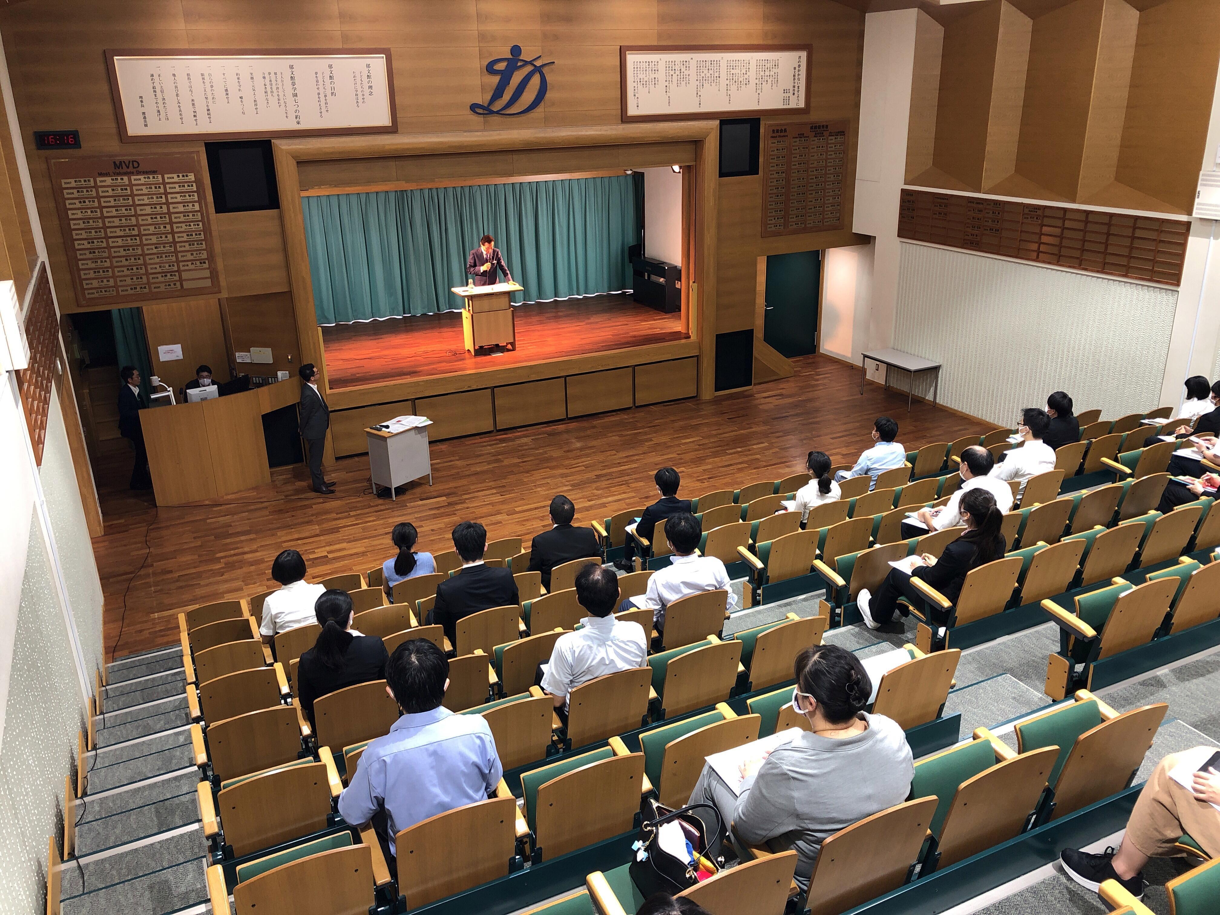 今回は、コロナウィルス感染対策でソーシャルディスタンス確保のため来校人数を制限し、来校いただいての参加と、Zoomを使用したオンラインでの参加と分けて実施させていただきました。