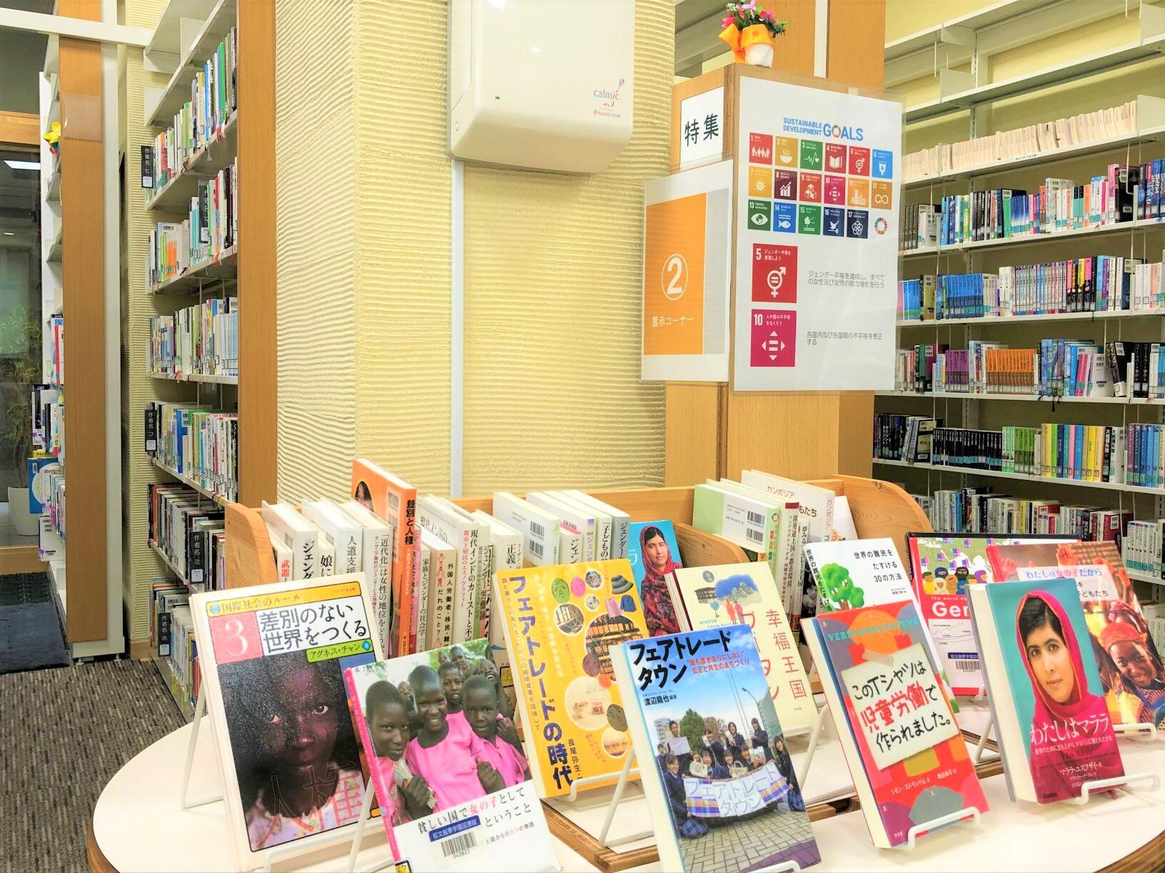 9月から、「5.ジェンダー平等を実現しよう」「10.人や国の不平等をなくそう」をテーマとして、関連図書を展示しています。