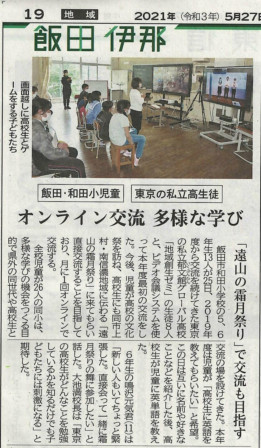 今後は、本校の文化祭「郁秋祭」に小学生を招いたり、遠山の霜月祭りに参加したりと、直接交流の計画も立てています。