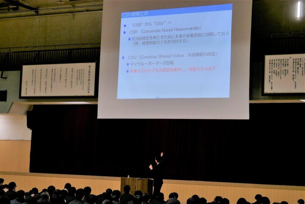 「社会価値」と「企業価値」を両立させようとすることが、令和の時代の会社経営おいてより重要度が増すという話を聞き、生徒達はより一層社会全体に目を向けることが必要だと感じたようです。