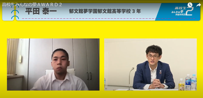 8月4日(水)に実施された、未来を担う高校生が社会問題を解決するためのビジネスモデルを発表する”高校生みんなの夢AWARD2”において、本校3年生の平田泰一くんが準グランプリ(全国2位)に選出されました!