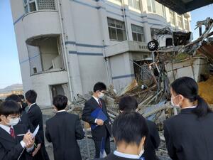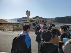 研修最終日は、気仙沼の震災伝承館で半日過ごしました。震災の被害を受けた高校をそのまま残し、災害の恐ろしさを語り部さんより生々しい話を聞きながら見学していると、その当時の光景が目の前に再現されるような錯覚に囚われ、恐怖と悲しさがこみ上げてきました。