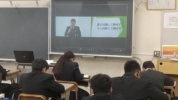 最後に、「君子は和して同ぜず 小人は同じて和せず」という論語。これは、すぐれた人物は協調はするが、主体性を失わず、むやみに同調したりしない。普通の人物はたやすく同調するが、心から協調することはないということを意味していて、目先の楽しさや誘惑に惑わされず、大切な時間を「学んで成長する」ために使って欲しいと生徒達に伝えました。