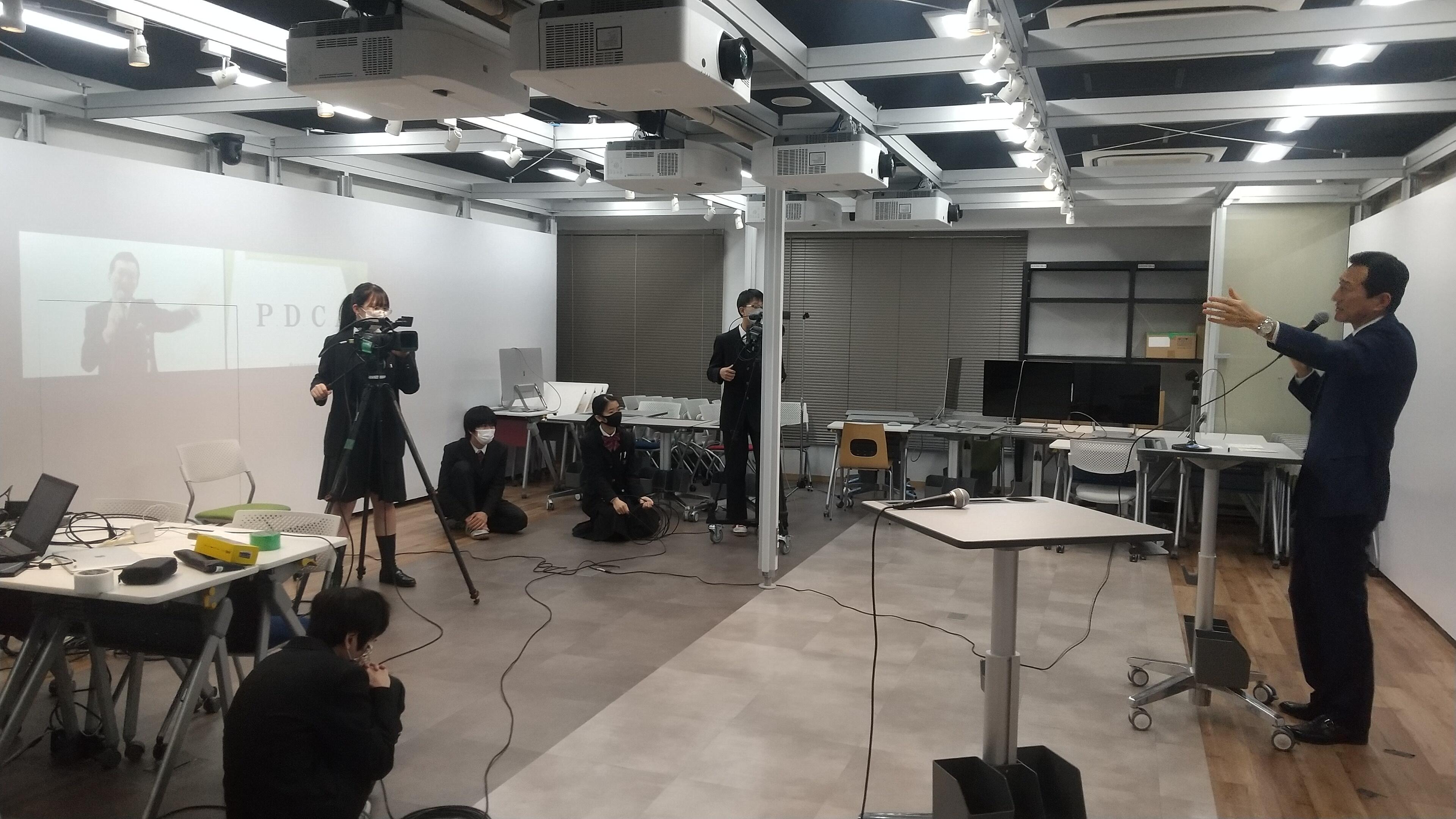今年度の終業式は、コロナウィルス感染拡大防止のため、ICT教室「FUTURE LAB」からライブ配信で各教室と繋いで行いました。