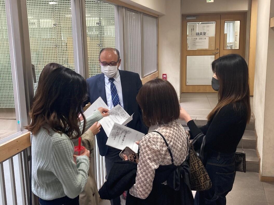 また、卒業した時の学年の教職員からのあたたかな激励の言葉や、在校時のVTRの鑑賞が行われました。校内では、様々な場所で卒業生と教職員が談笑しており、近況報告をしていました。コロナ禍という大変な世の中ではありますが、その中でも負けずに頑張っている卒業生の姿に教職員も少しホッとして嬉しそうな様子でした。