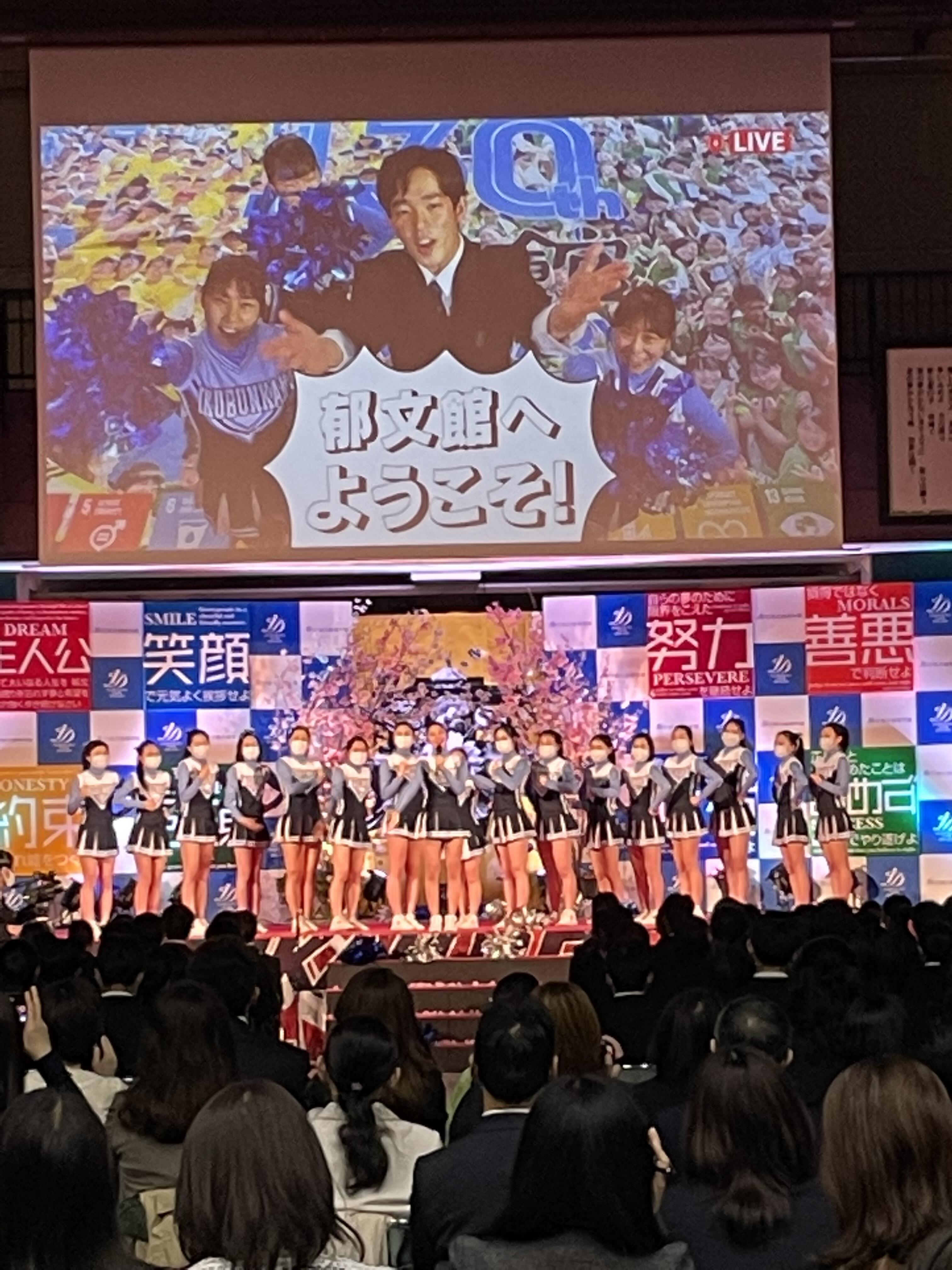 郁文館の先輩達からは、チアリーディング部からの圧巻のパフォーマンスによる歓迎の舞いや、各部活のアピールをはじめ、先生の有志である「教員スペシャルチーム」からもあたたかなメッセージが届きました。