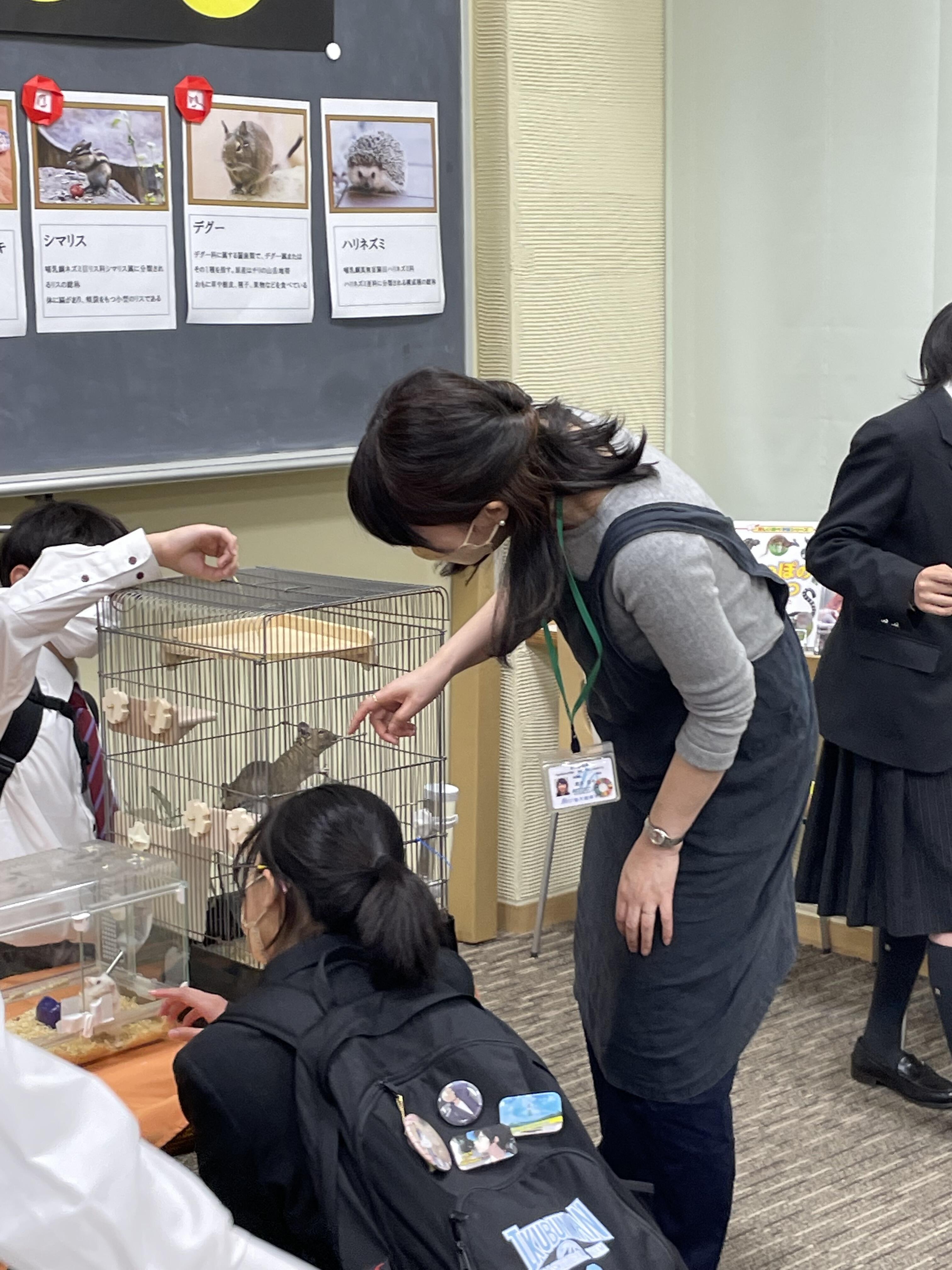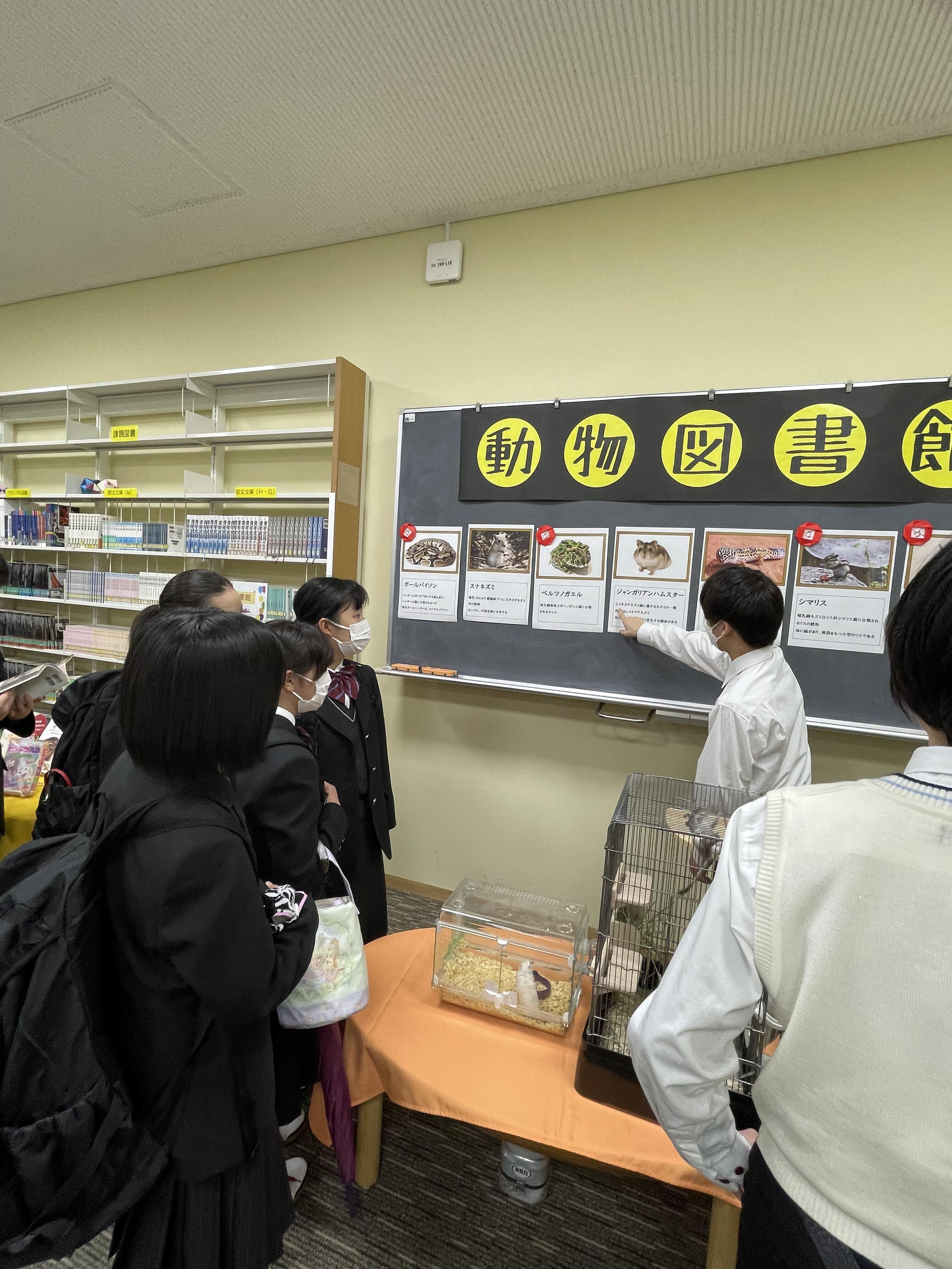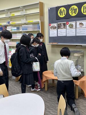 「図書館に動物⁈」という挑戦的な試みに職員は内心ドキドキでしたが、その意外性に生徒たちも、先生達も?!トキメいてくれたようで、大好評のなか終幕となりました。