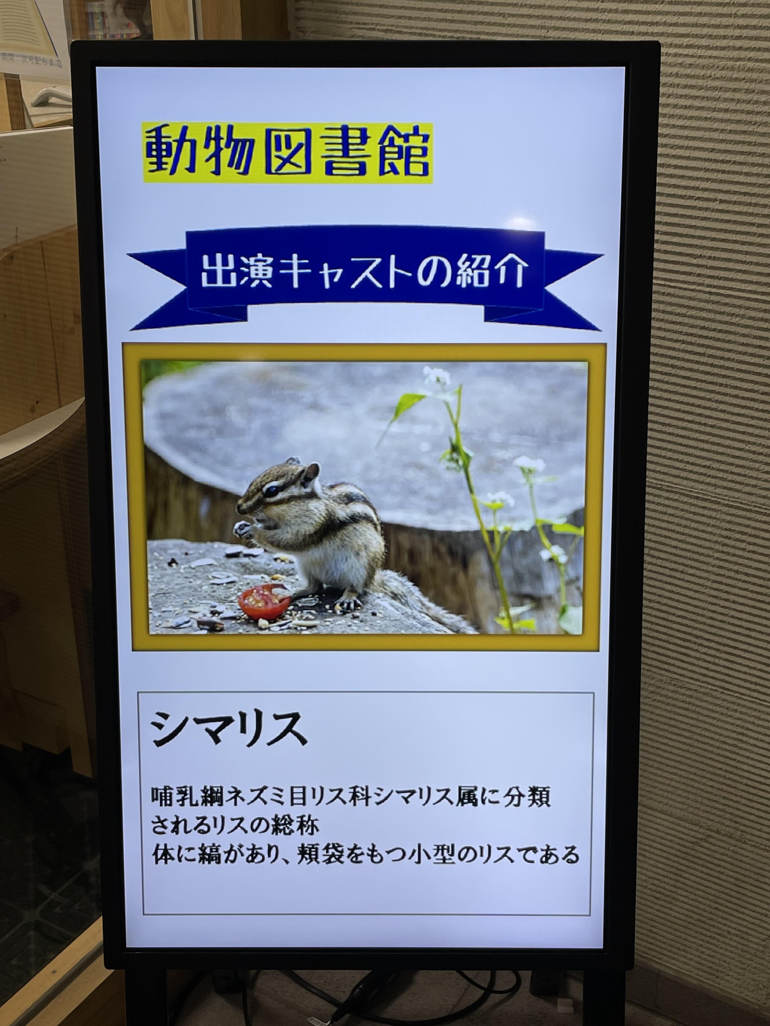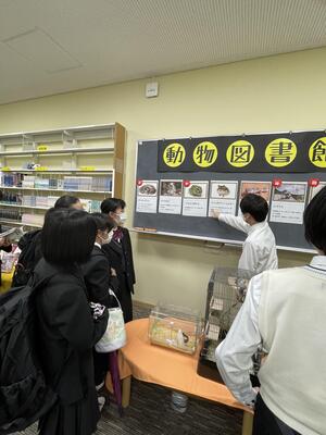 生物部による全面協力のもと、人気の動物たちを図書館で展示し、