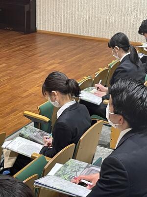 後半はパンフレットを使いながら、郁文館が大切にしている思いが伝えられました。多くの参加者がメモをとりながら、真剣に耳を傾けていました。