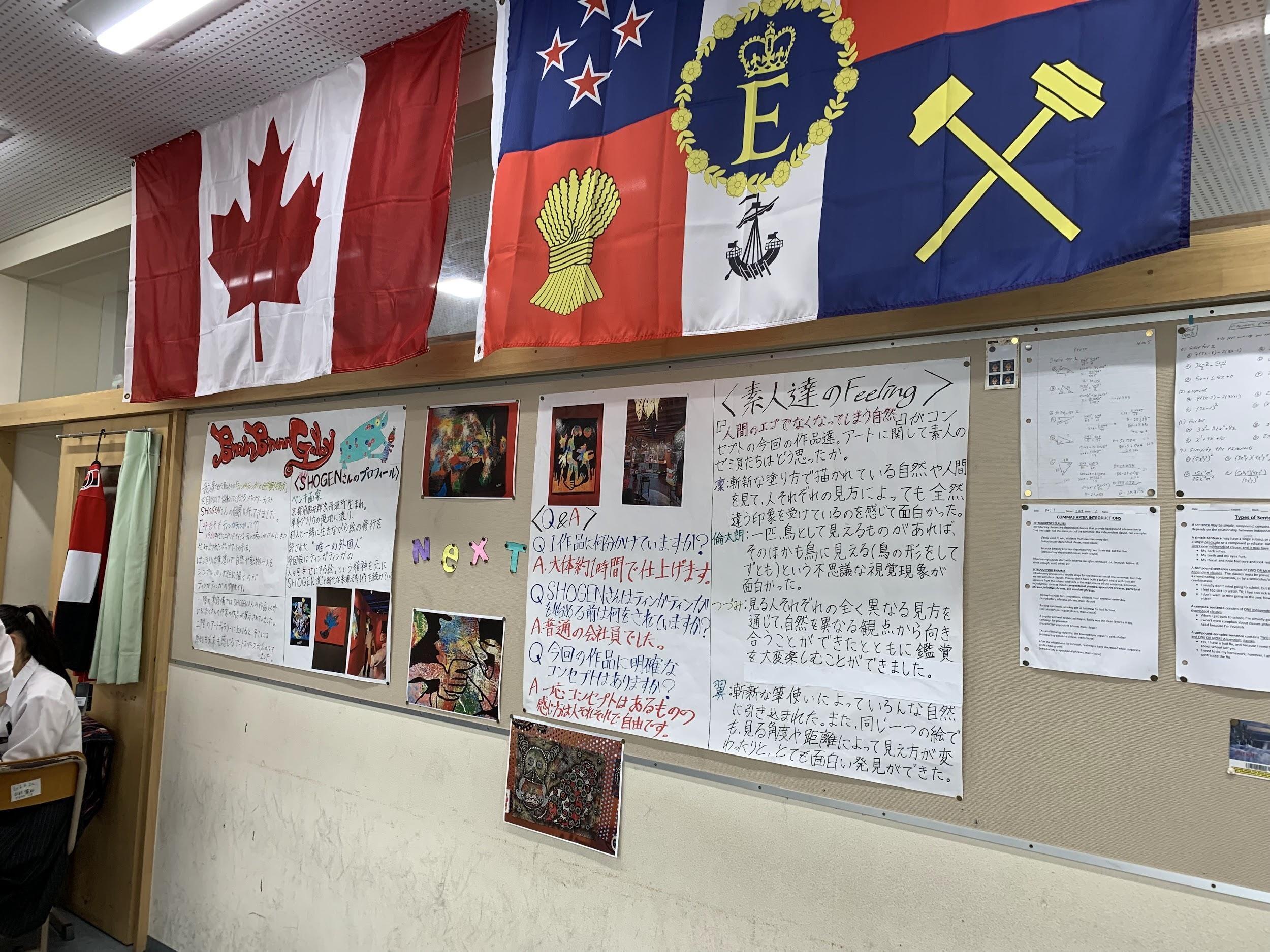 展示され、学年展示やグローバル高校の協働ゼミ展示、