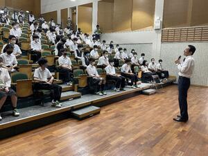 講義の後半では、郁文館高校で開講している起業塾についても紹介され、郁文館に入ったチャンスを最大限に活かすよう話され、今だからこそ人生を設計し、目的を持って高校へ進学するよう生徒達に檄を飛ばしていました。