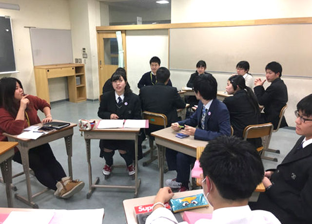 「社会探究」は、時間割の中に週2コマ組み込まれており、その時間に外部から出張講義に来ていただいたり、こちらから訪問したりするほか、ゼミ長の生徒を中心に、放課後に集まり議論を行うなど、自主的に活動しています。