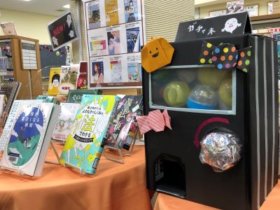 また、秋の読書推進企画として「ガチャ本(ほん)」も設置しています。ガチャガチャを回すと本のタイトルが入ったカプセル出てきて、「いつもは選ばない本を読んでみたい」とか、「本がたくさんあって、何を選んだら良いかわからない」という生徒にとても喜ばれています(生徒たちのリアクションを見て、私たちスタッフもドキドキ・ワクワクしています!)