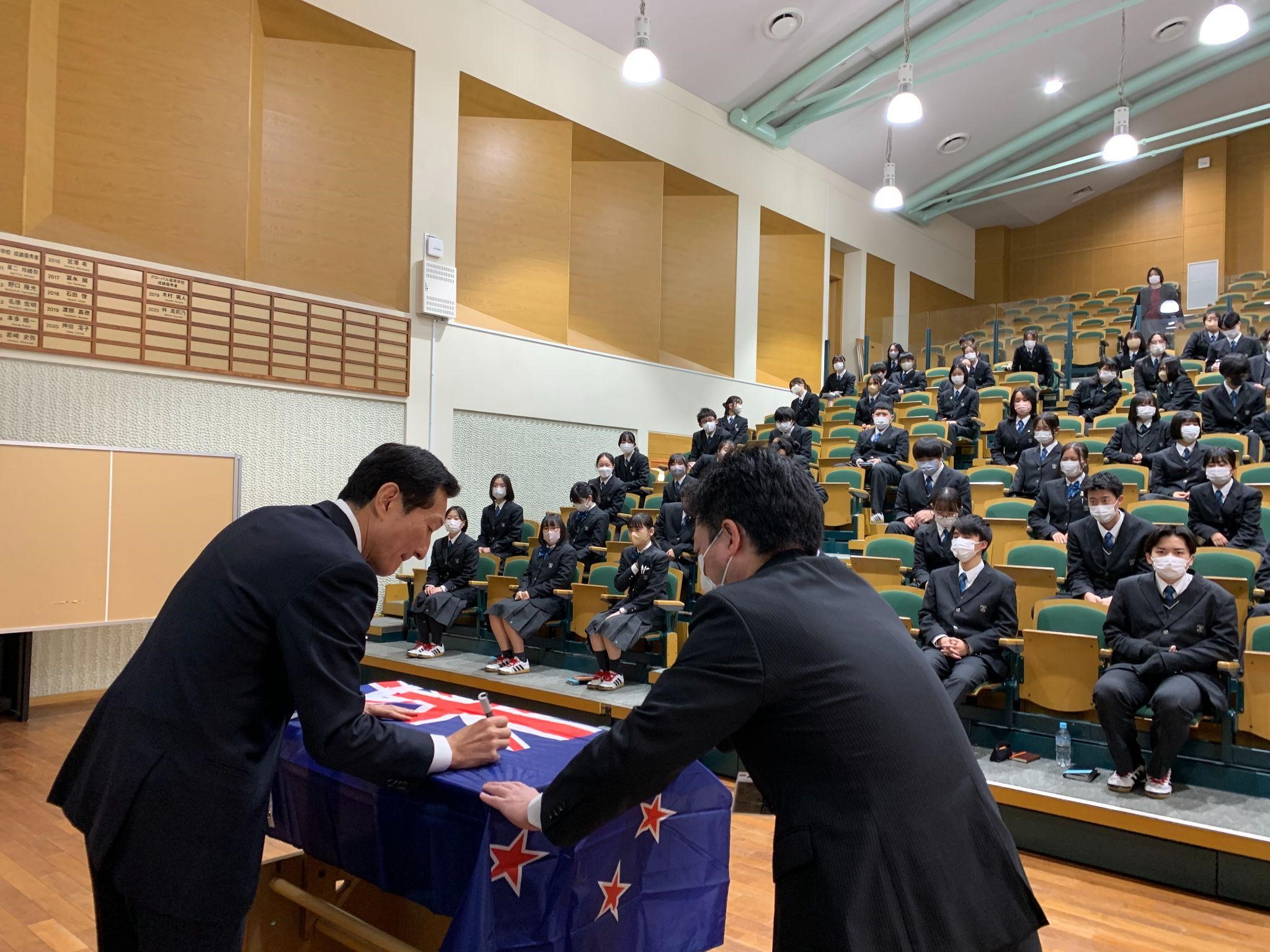 最後には、3ヵ国の国旗にメッセージを貰いました。これから留学先で孤独を経験し、生徒たちは圧倒的な「人間性」と「専門性」を身につけてくれることでしょう。この講座と留学をきっかけとして、生徒一人一人が真のグローバル人材(国際人)になってくれることを期待しています。