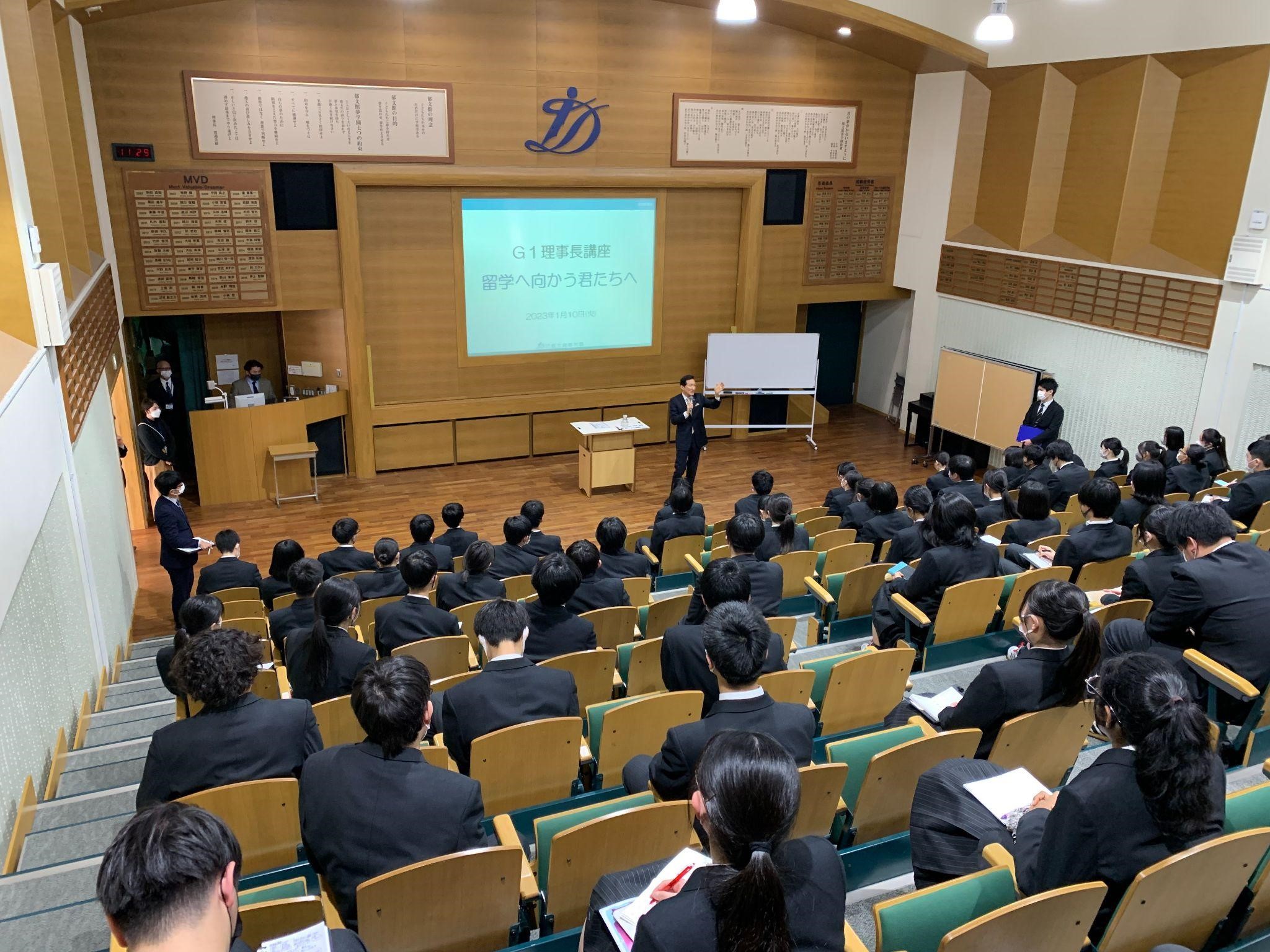 グローバル1年生理事長講座『留学に向かう君たちへ』