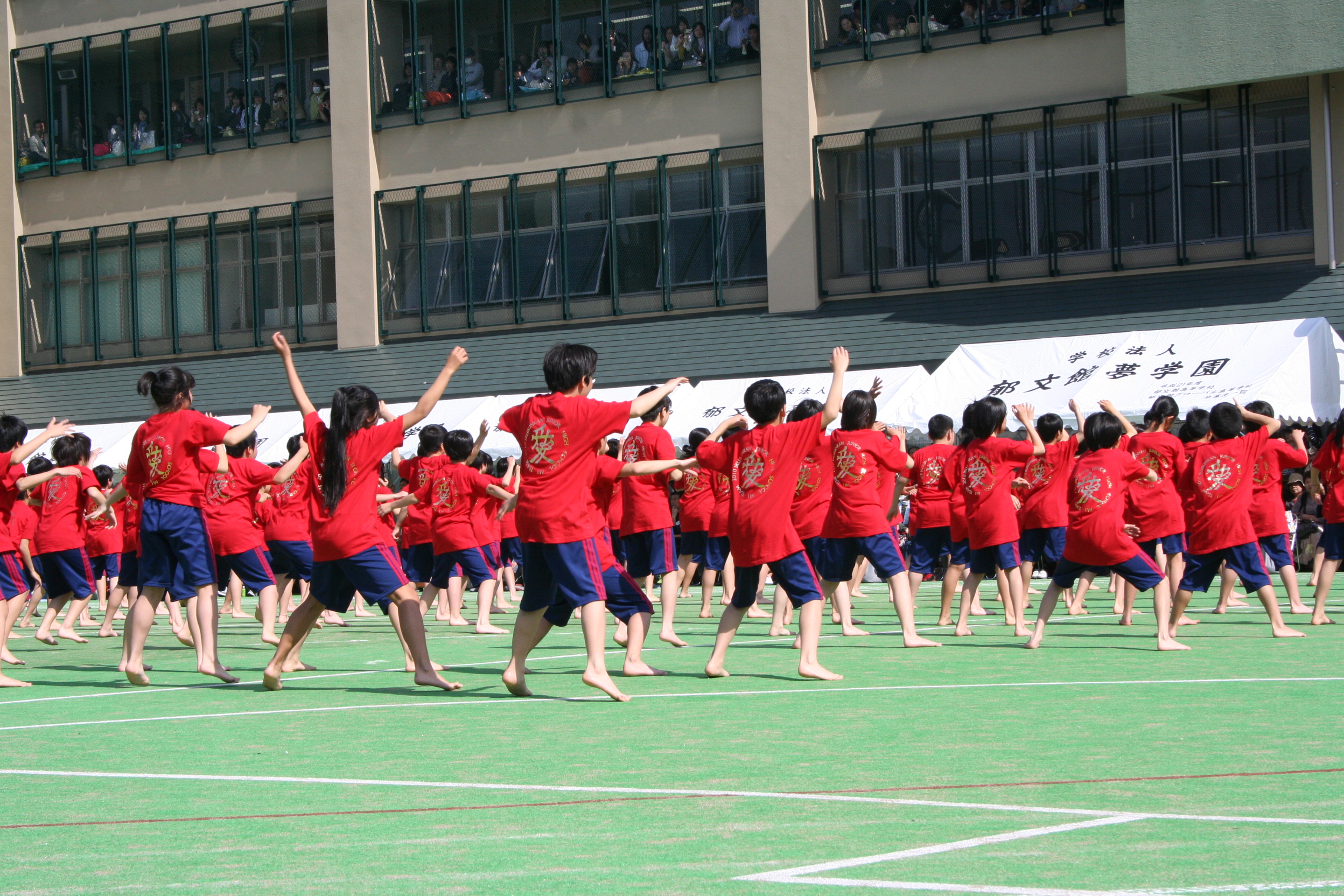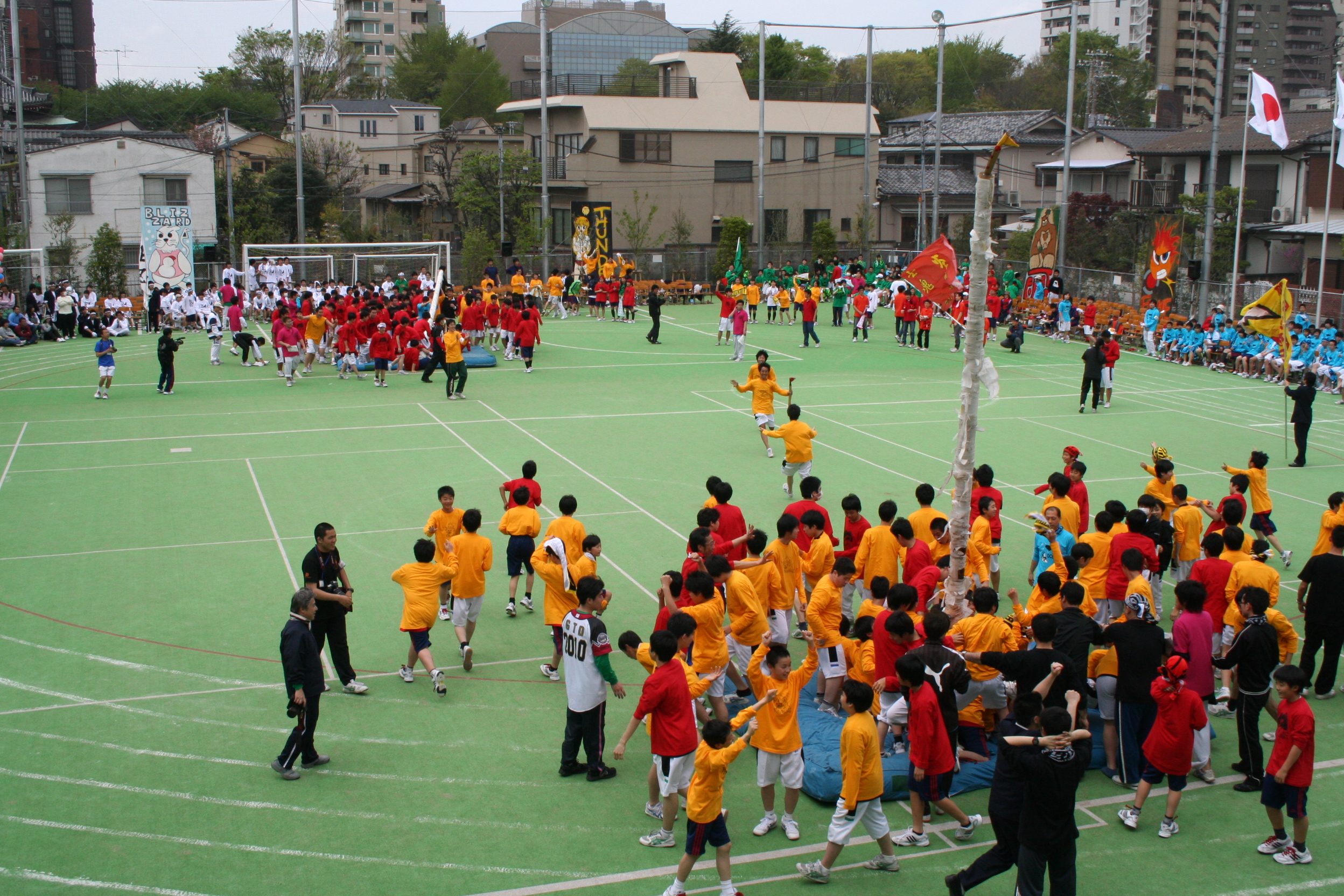 で行っていましたが、新校舎が完成し男女共学となったことを機に、学校のグラウンドを使い別