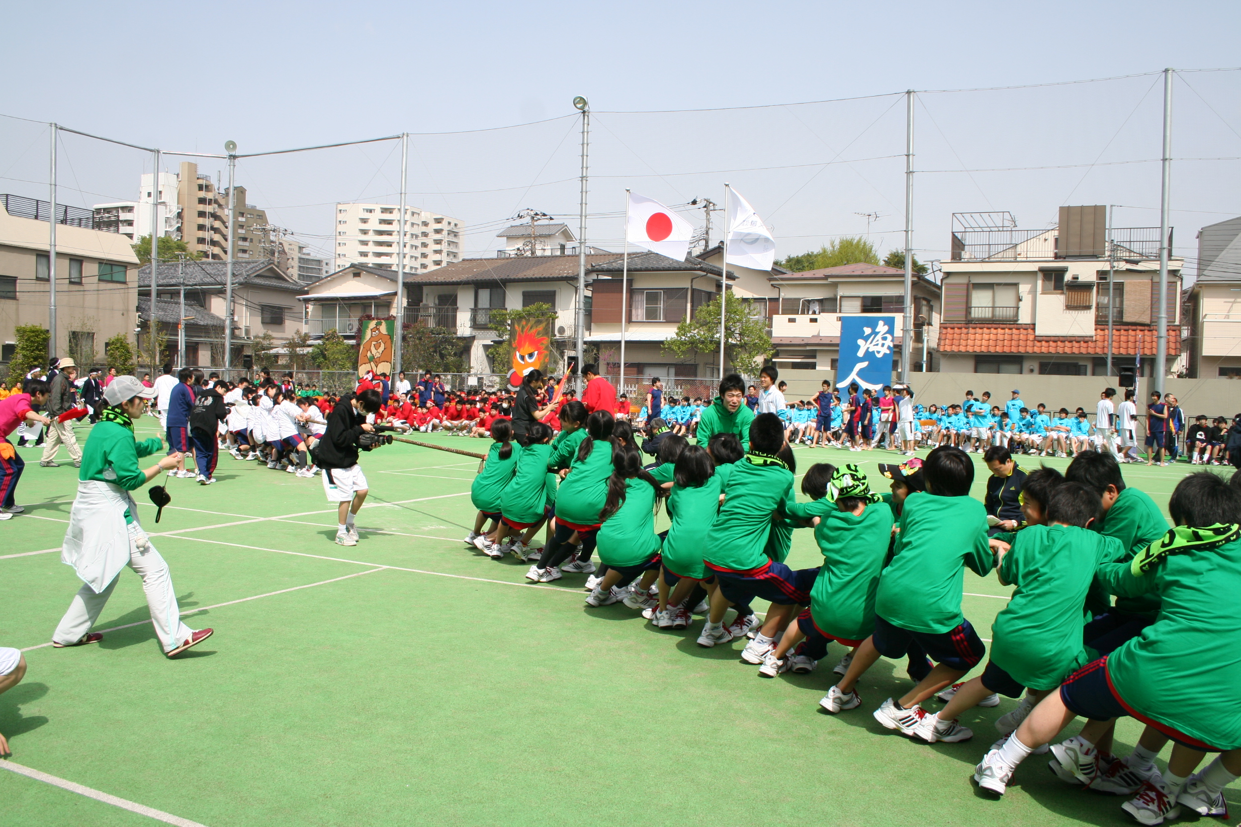 こちらは4/29(木)の中学体育祭の様子です。 綱引きは男女混合チームで戦います。 棒倒しは男子だけで競い合います。 創立121年目にして初めて男女の生徒がソーラン節を一緒に踊りました。 中学体育祭の結果。サンダー(Thunder)の優勝です。 こちらは4/30(金)、高校・グローバルの体育祭の様子です。 選手宣誓で高校・グローバル高校の体育祭が始まりました。 応援合戦は女子の参加によりレベルが上がりました。 高校・グローバル高校の体育祭はブリザード(Blizzard)の優勝です。 共学初年度の体育祭は素晴らしいものでした。来年、再来年とさらにレベルアップしていきましょう。