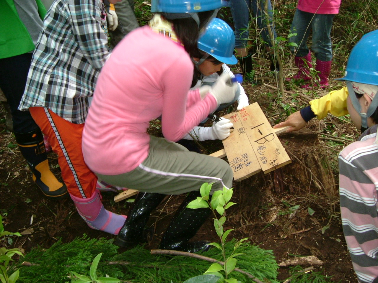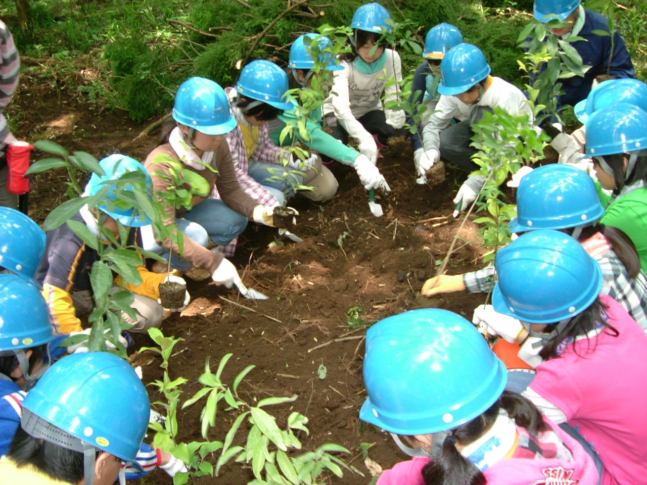 全員で広葉樹の苗を植えます。