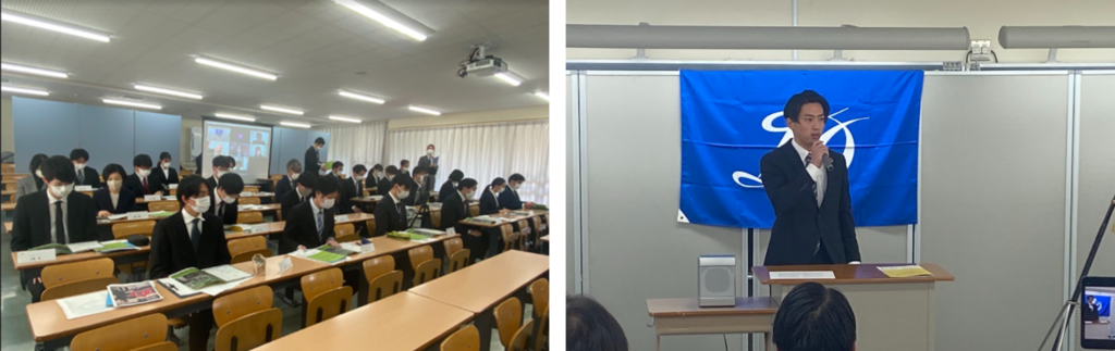 冒頭で、渡邉理事長から学園の理念や使命、教育目的、教職員としての姿勢・心構えについての話があり、内定者たちは真剣なまなざしで耳を傾けておりました。その後、内定者代表として高橋賢さんから、「生徒と共に成長していき、夢を追いかける手助けをしていきたい」という強い決意表明がなされました。
