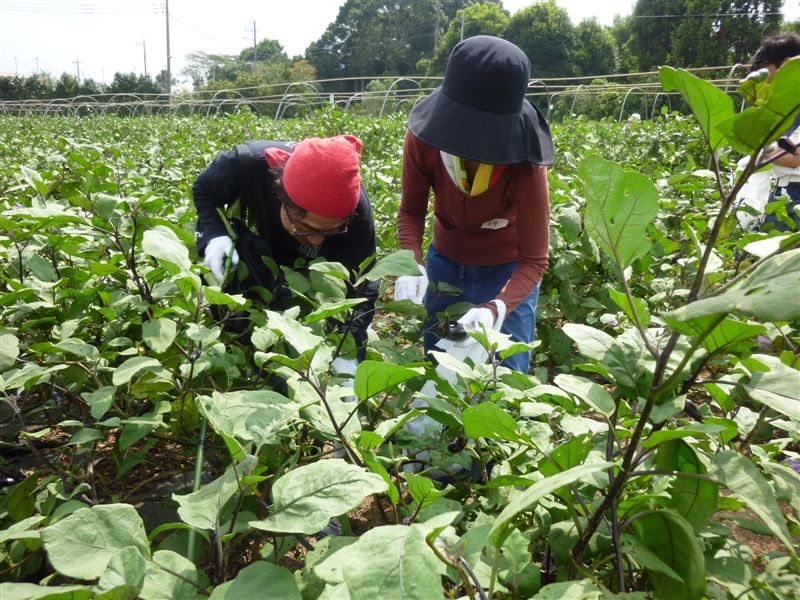 有機野菜ならではの、茄子の丸かじりやオクラの花を摘んで食べる体験をしました。