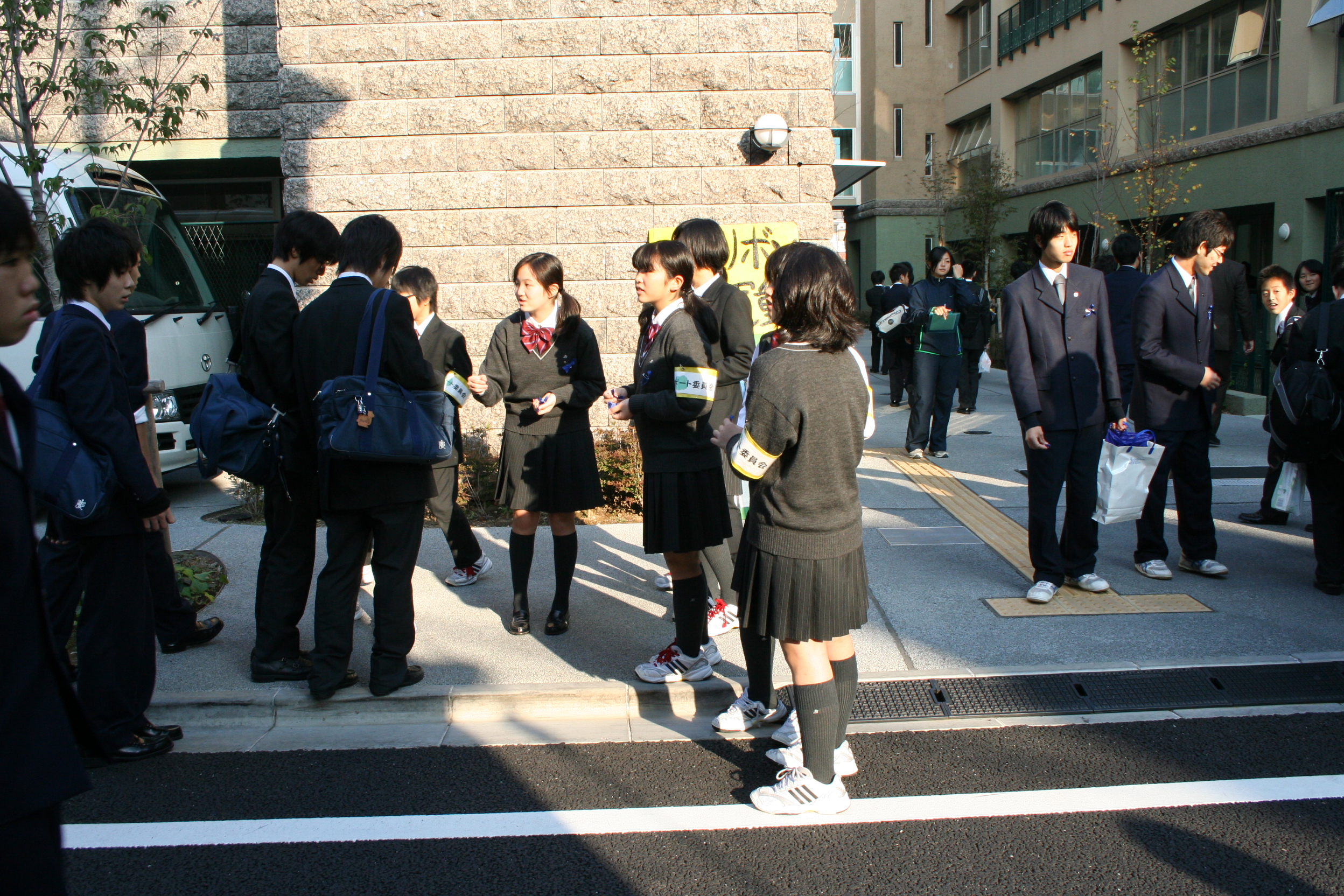 誰もが周りの人たちに優しい気持ちをもって接し、郁文館ではいじめが起こって欲しくないという願いから、生徒たちが自主的にこのブルーリボン運動を始めました。