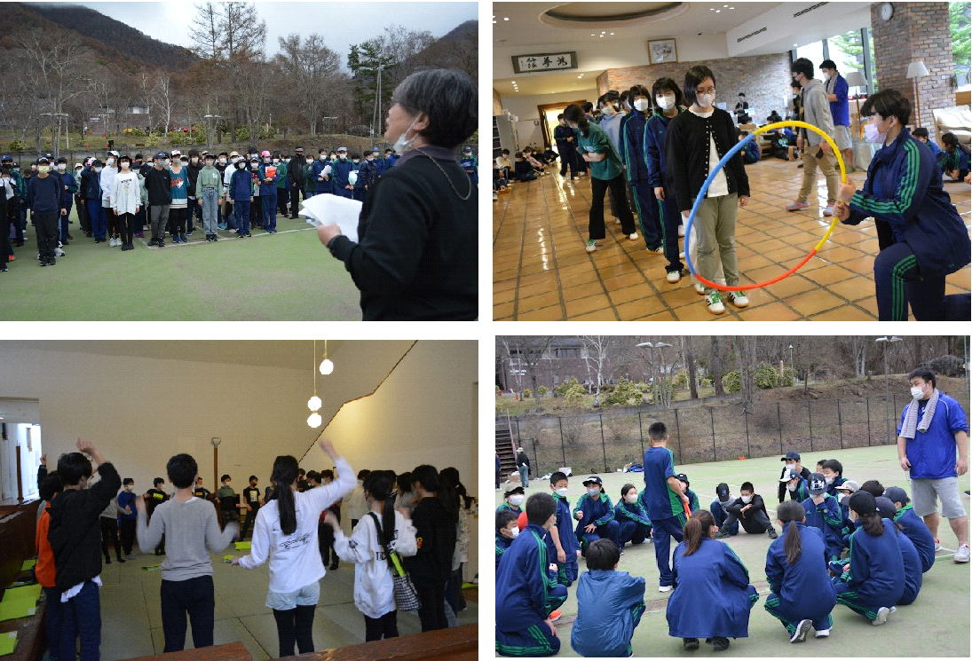 2日目はEQプログラムを行いました。チームビルディングを通して、仲間との関わり方や、目標達成までのプロセス作りを体験することが目的のプログラムです。今回は、「みんなが安心してチャレンジできるクラスを作ろう」を目標に、午前中はテニスコート、午後は室内で活動を行うなど、様々なアクティビティ を行いました。入学してすぐの合宿だったため、まだコミュニケーションがとれておらず不安だった生徒たちの姿が一変し、明るくわいわいと楽しむ姿が見られました。このアクティビティを通して、自分のクラスのメンバーだけでなく、クラスをまたいで他クラスの仲間たちのことも深く知る機会となりました。