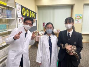 2022年からスタートした新しい企画ですが、早くも生徒たちの待望の企画となっています。新たな動物のラインナップに目をキラキラと輝かせた生徒らで、今年も図書館がいっぱいになっていました。訪れた生徒だけでなく、毎日愛情を持って動物を育てる生物部の学生も、「動物博士として頑張る!」と開催初日から意気込み、集まった学生に活き活きと説明をする姿が印象的でした。